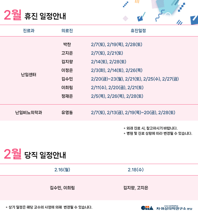 2026년 2월 휴일 및 당직일정 안내